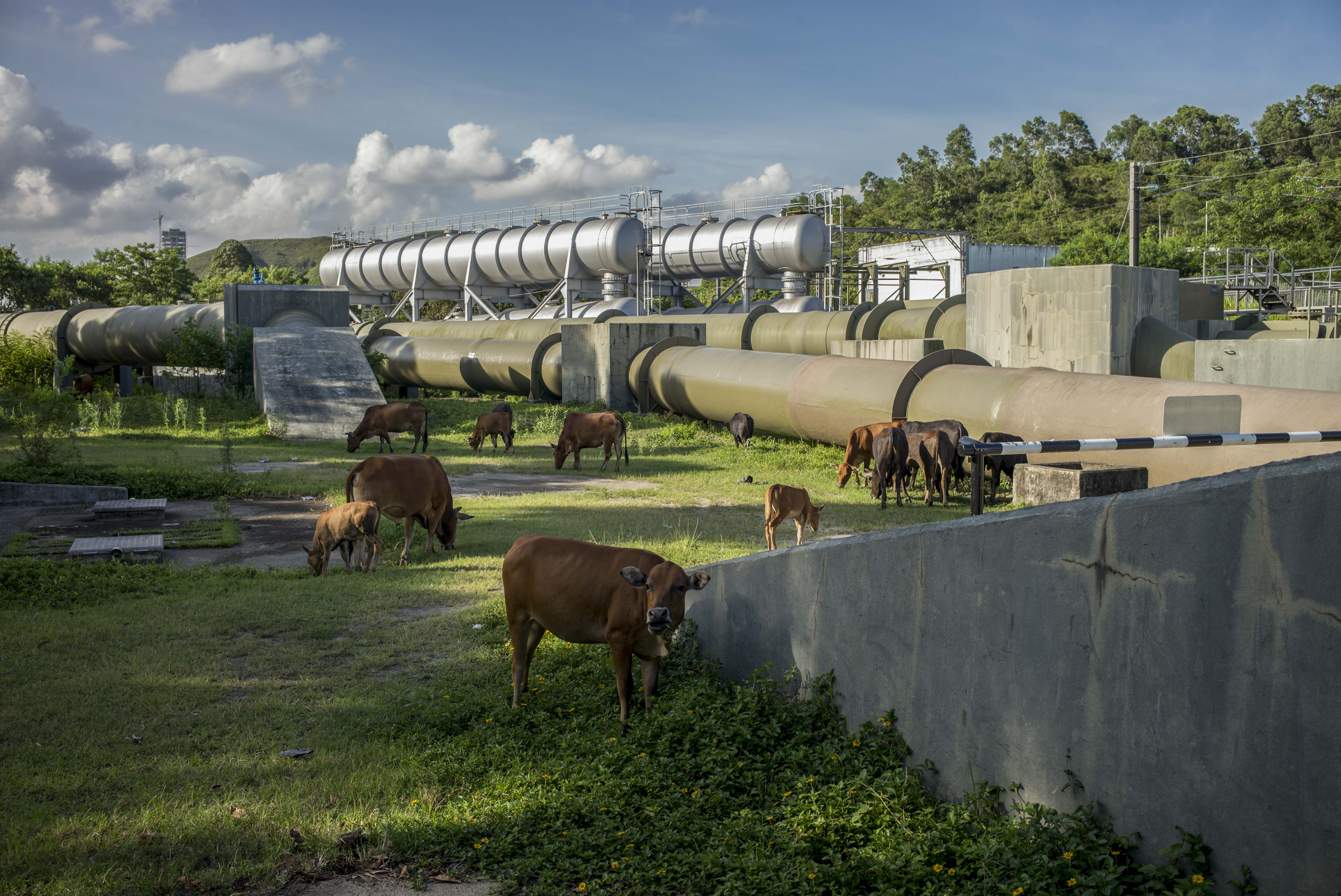 圖說:上水東江水管近年吸引不少攝影愛好者到此取景,水管旁的草地也是牛群喜歡的覓食之地。