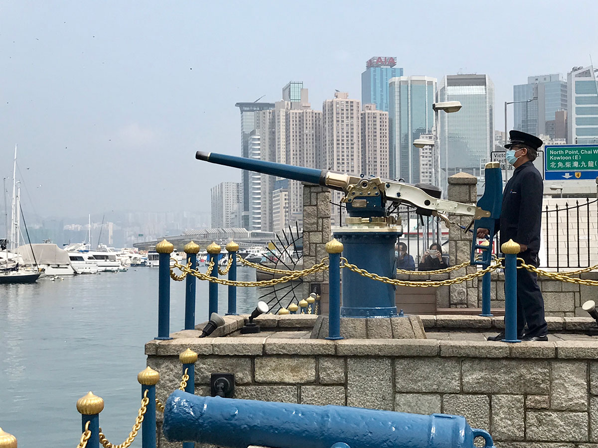 於銅鑼灣避風塘岸邊,每日中午,怡和午炮仍依時鳴放。炮台於 1841 年由怡和洋行建成,最初是為要對付海盜,後來每當有名人抵達或離開香港,也會鳴放禮炮表示敬意。有次一位怡和大班乘著快艇,越過駐港英軍的軍艦到銅鑼灣時,岸上員工鳴放禮炮歡迎,引來軍官惱怒。為表歉意,怡和便擔當起報時的職責,於每天中午12時以鳴放禮炮。