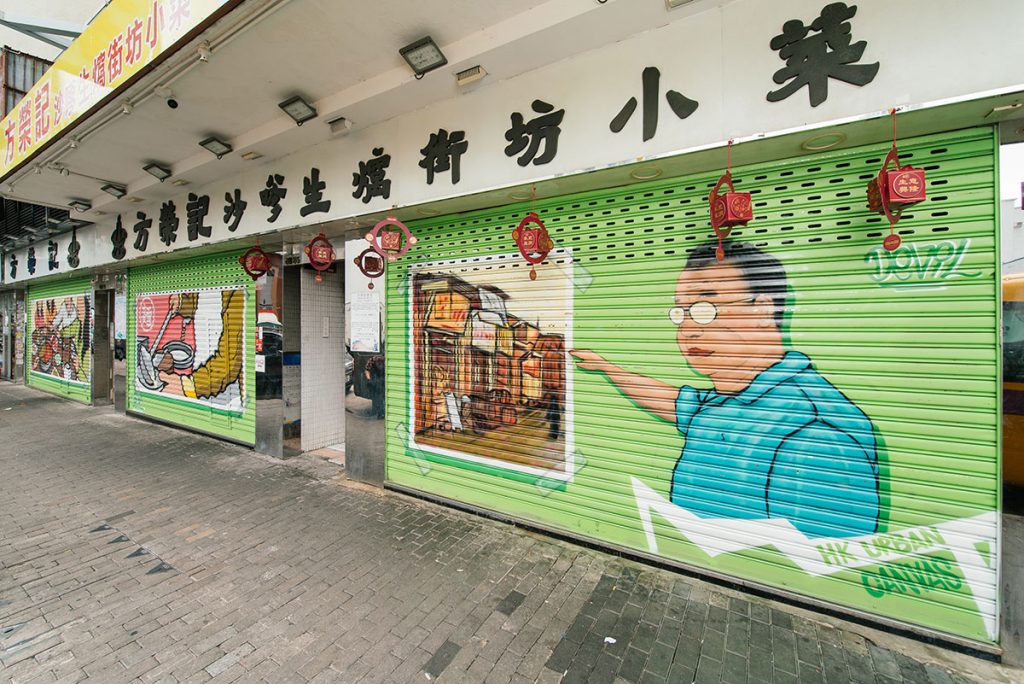 街道上的閘門,是舊社區一道獨特的風景,也是每間小店珍而重之的資產。「閘門始終對街,很多老闆都會想我們把閘門畫得漂亮一點。」城市閘誌計劃經理梁梓豪(Oskar)分享。拍照可能只需一瞬間,但畫作卻要花上長時間。由於餐廳經營時間長,畫家只能在晚上深夜時分畫閘門,邊畫、邊觀察和訪談,慢慢地與店主甚至附近街坊建立關係,「很多店主由一開始內斂,到分享更多故事,附近街坊經過看過,也會駐足觀看,甚至有時給予意見。」