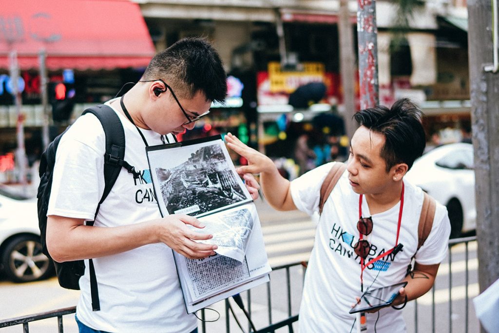 城市閘誌還會舉辦導賞團,讓市民了解不同社區的特色。左為城市閘誌計劃經理梁梓豪,正分享九龍城寨的歷史故事。