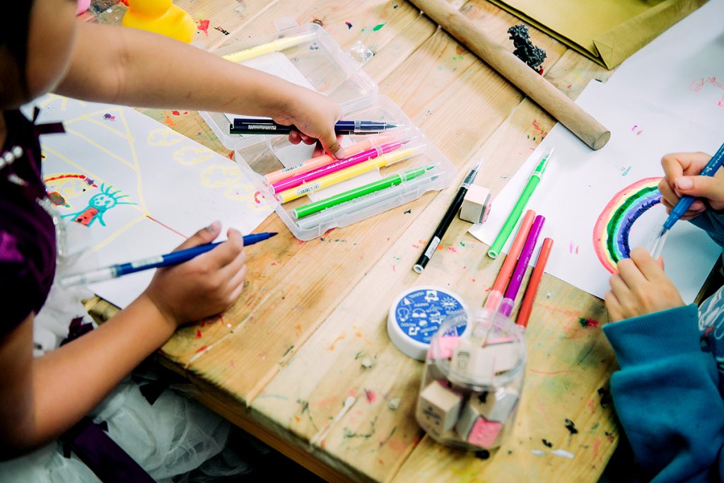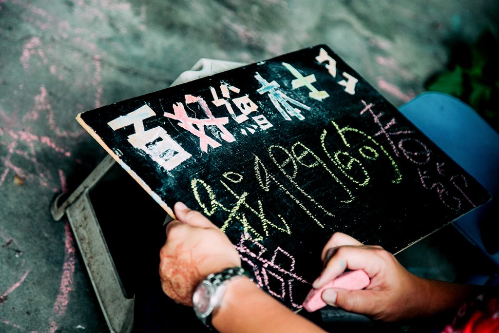 有些小朋友一早已到達士多,在置中的小木檯上即席揮毫。