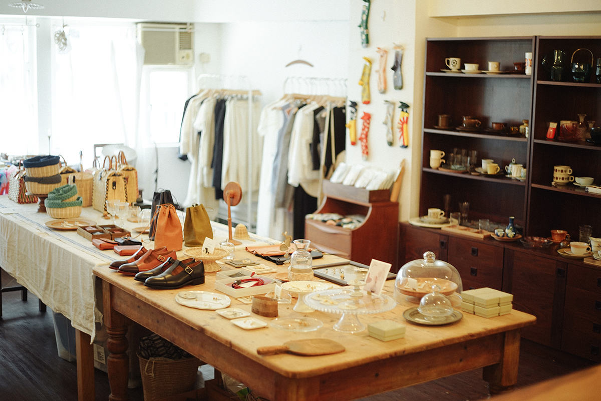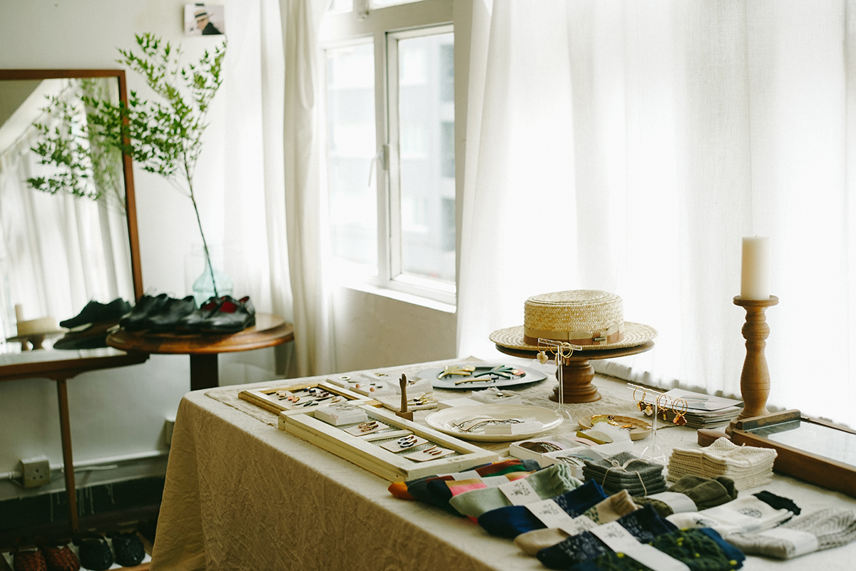 灣仔軒尼斯道在週末的早上依舊人來人往,夏天的陽光猛烈地灑下,熱氣騰騰,讓人想盡快離開。從德昌大押旁的富德樓快步拾級而上,乘搭古老的升降機,來到四樓,門打開,迎面而來卻是這樣的空間 —— 偌大的店子,窗邊掛著半透明的白紗窗簾,讓外頭的陽光進來時忽然溫柔了不少,細細碎碎地曬落一地;只中間與靠牆的位置放著桌子,桌子上滿滿都是獨特的手工造物,讓人忍不住駐足細看,「我們希望成為一個鬧市中可以讓人停留的地方。」