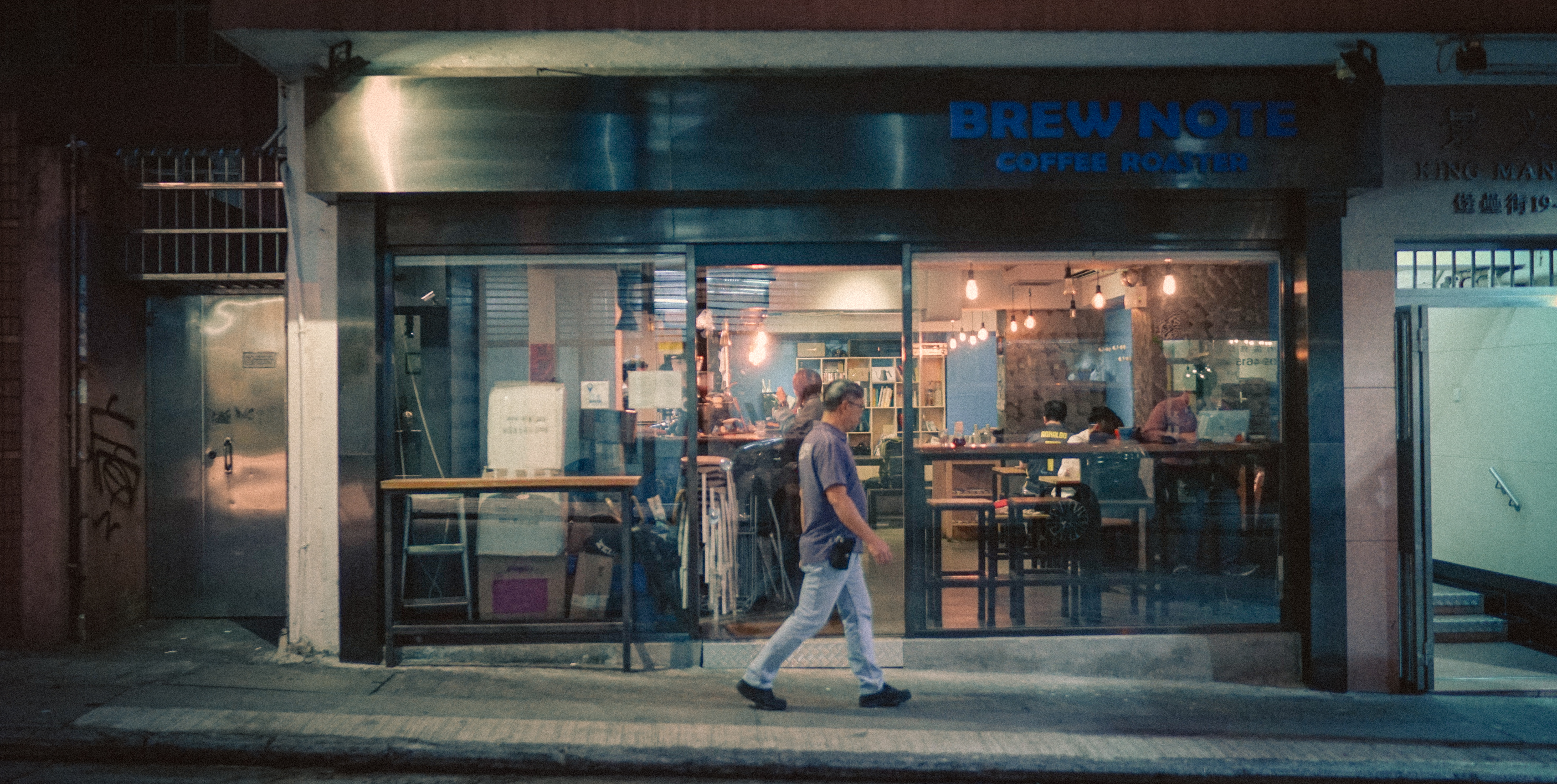 從北角地鐵站出來,沿著英皇道一直往前走,沿途看見新光戲院,偶爾電車駛過,響起熟悉的「叮叮」聲,之後轉入北景街,再走一小段路後拐入堡壘街。這條街道毫不起眼,在平日傍晚時很寧靜,轉角之處有一檔生果店,走上一點會看見素食餐廳,偶爾住在樓上的街坊走過——Brew Note Coffee Roaster就座落於這條街道。