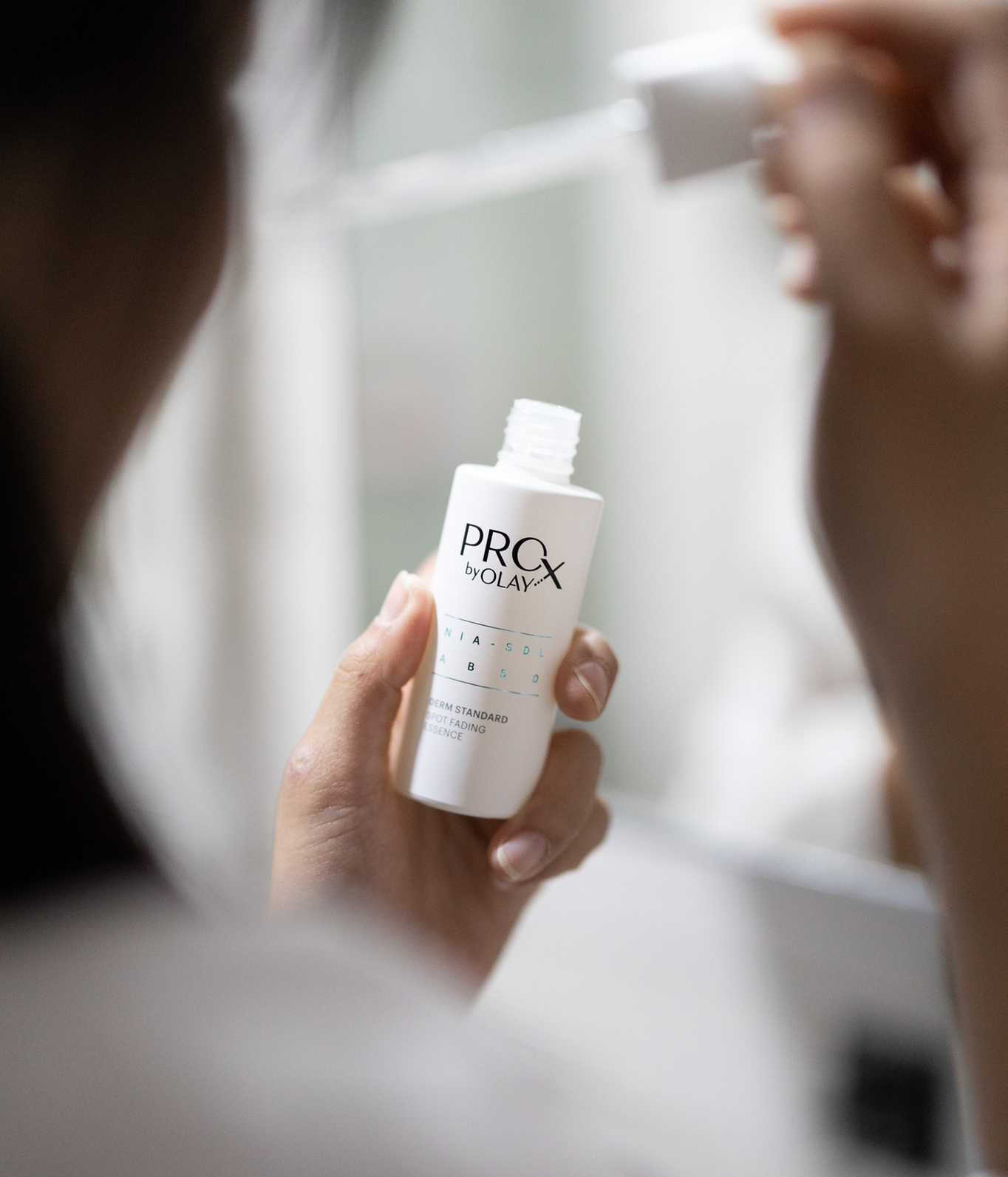 【真實用家2‧Kylie】一直以來,最困擾我的肌膚問題就是色斑痘印,用過很多醫學美容品牌的淡斑去印精華,效果都一般,不只斑印反覆,皮膚更會變乾,再加上平時習慣以厚妝遮蓋,肌膚狀態更難改善。上個暑假本來打算做激光去斑,但不少朋友強力推介PROX by OLAY抗氧淡斑精華,就姑且一試吧。結果它就是我尋尋覓覓的Mr. Right,一個月內真的看見臉頰色斑、額頭痘印越來越淡,現在素顏都淨透無瑕,不用每天花時間化厚重的底妝遮遮掩掩!
