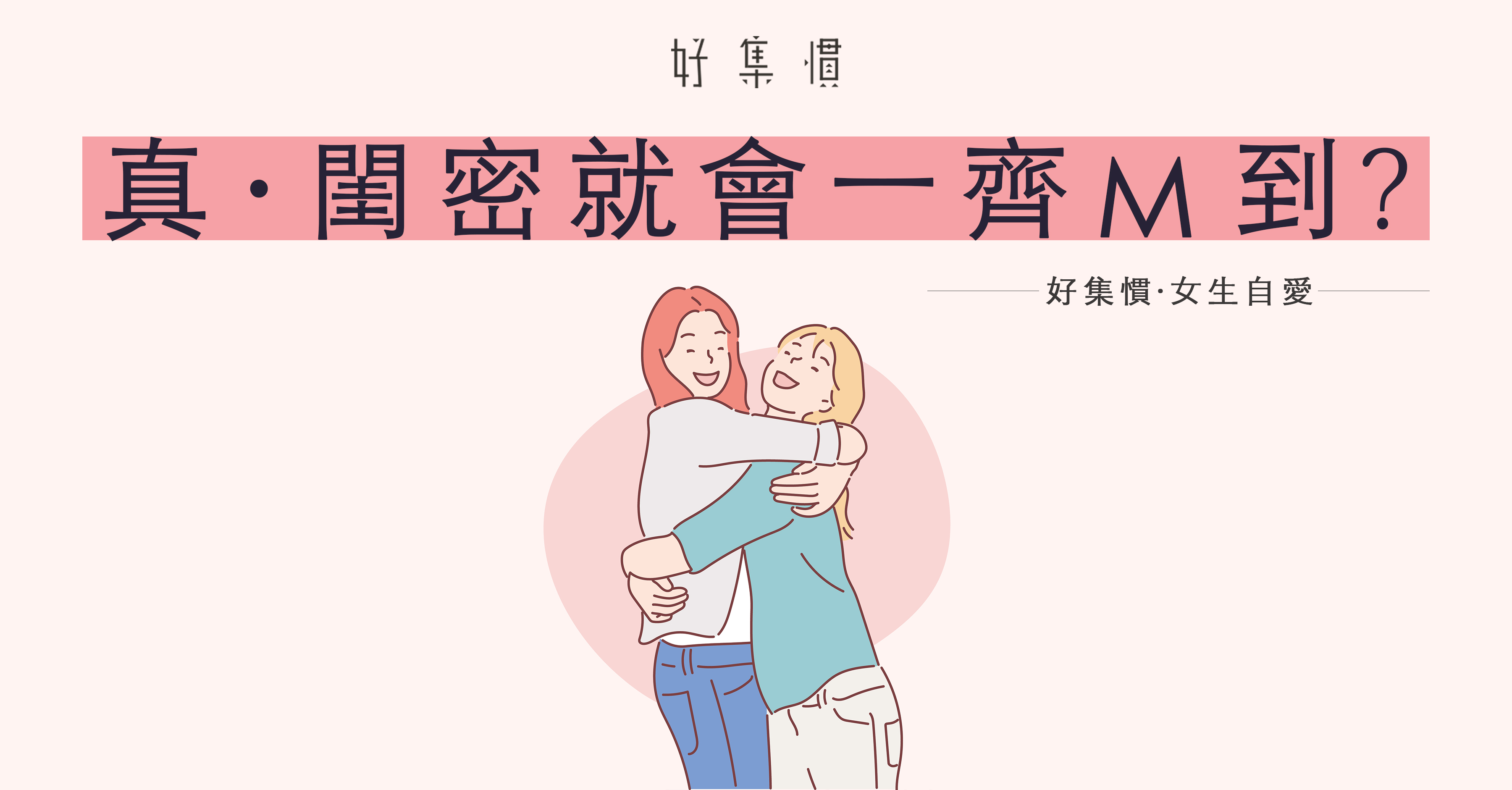 原來一切純屬巧合,但身邊有個一齊M到的閨密總是莫名有點開心,雖然不能證明二人的默契,至少有需要時可以問她借M巾。而且,生理期很多尷尬、不適、困擾難以跟家人、男友訴苦,還好有閨密當我們的最強後盾,有什麼疑惑都可以放心跟她說。