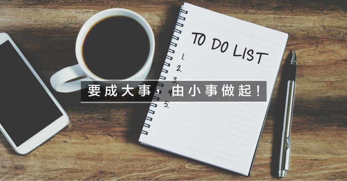 其實,在我們每天迎接一項又一項任務或工作之間,有好多個幾分鐘幾分鐘的零碎時間,正正就是做好小事的好時機,讓我們為做好大事鋪路。