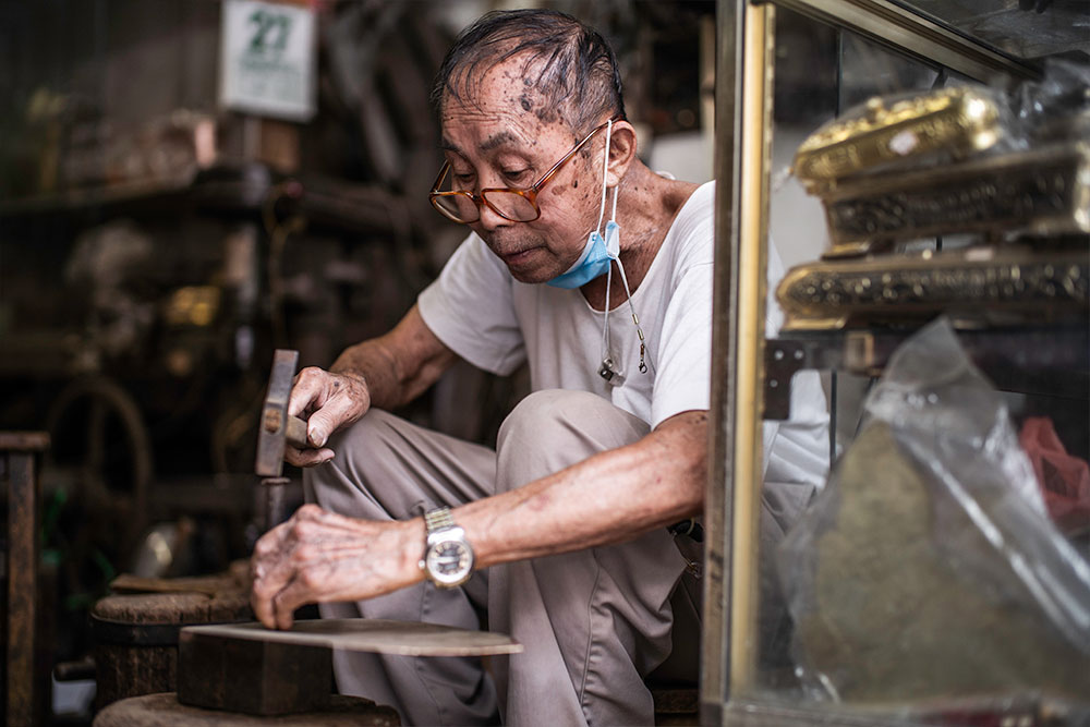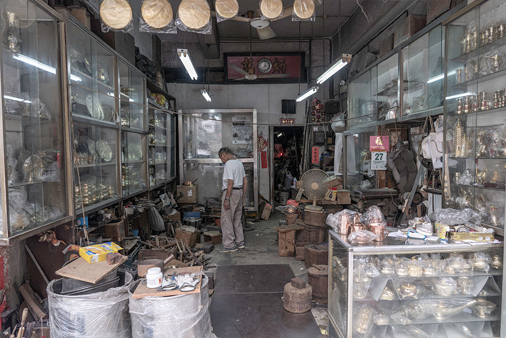訪問完了,陸樹才把拍照用的銅器仔細放回包裝袋、又重新把收音機扭大。這些平凡的舊街光景也許終要落幕,舊時代的種種輝煌,或許一如打銅的餘韻,只能輕輕消散在車水馬龍的煩囂裡。