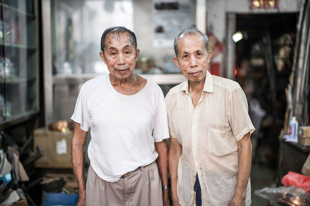 七十年代末不鏽鋼出現後,打銅業由盛轉衰,工匠要麼轉行、要麼退休;以往滿街打銅聲,現在只剩下陸炳記一家零丁的獨自迴響。陸樹才說店鋪最後一個員工也在不久前退休,老字號終究還是剩下兄弟二人。對於行業式微,見慣風浪的老人雲淡風輕,「呢啲嘢古老,社會唔需要你呢類嘢,自然就淘汰,好現實。」