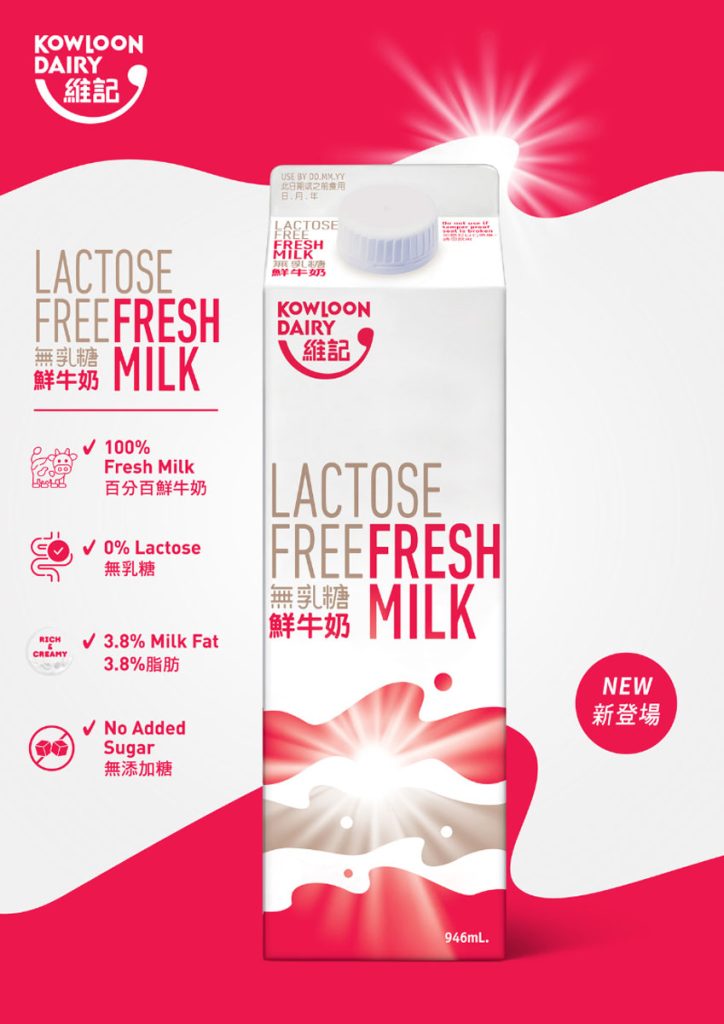 話說回來,根據衛生署建議,成人每日應攝取1-2杯奶類及代替品,小朋友及青少年則是2杯,來補充鈣質和蛋白質。但對於喜愛牛奶的人來說,牛奶不單是營養來源,更是滿足味蕾的享受。無乳糖鮮牛奶既保留豐富營養,又有香濃幼滑的口感,只是於製作過程加入乳糖酶,將乳糖分解成葡萄糖和半乳糖,令牛奶變得更容易消化,即使乳糖不耐症人士都可以盡情享受鮮牛奶的香濃滋味。