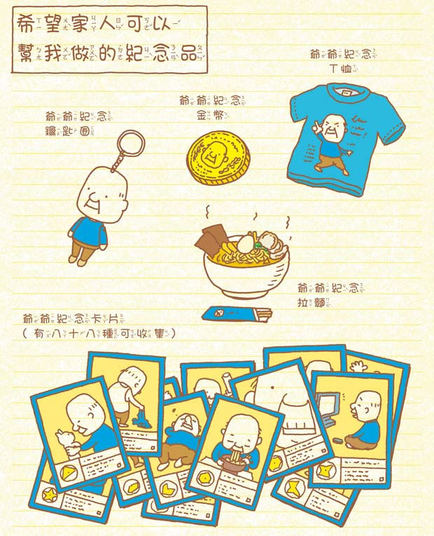 種種幽默的敘述更是超脫了世俗對死亡所抱持的悲觀定型,例如在爺爺的想像中,他首先會到「靈魂中心」(Ghost Centre)報到,透過「機器」變成「透明體」回到人間,確保所有事情安排妥當。然後,他可以選擇到天堂或重生。在筆記本內,爺爺除了畫下他心中的天堂和地獄,亦列出各項瑣事,例如要帶甚麼東西到天堂、來生想當甚麼、遇到各類的神要問甚麼問題等等。