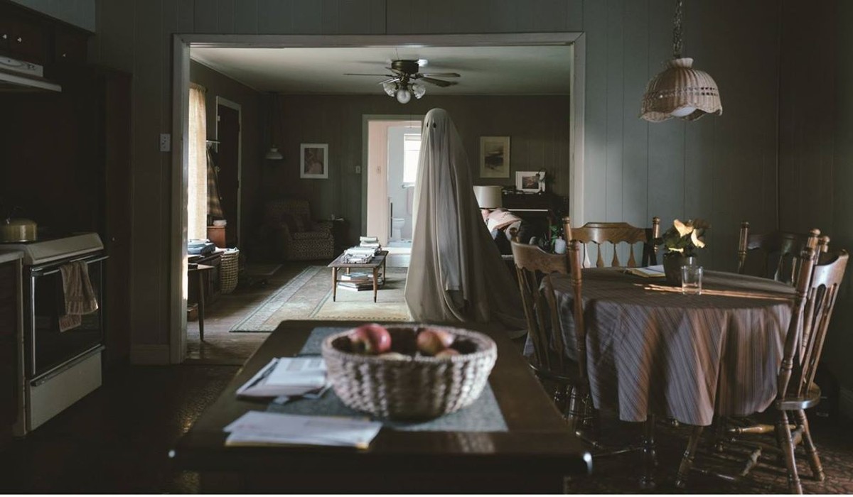 想起了電影《A Ghost Story》。丈夫因意外死去,化成一隻蓋着白色床單的鬼魂,終日守在家中陪伴形單隻影的妻子。看着妻子悲傷至行屍走肉,卻無法溝通無法安撫。他自己其實也被思念纏着,妻子在前,思念卻很遠。更痛的是,活着的人總要過日子,妻子的時間不會因此停頓,她振作,搬走,另結新歡,剩下他一隻孤魂仍困在這家。從此,他的思念和她的不再對等。後來另一家人搬入,後來樓房要拆掉,後來,他在一片荒蕪之地忘記了自己為何在此,思念的到底是誰,是什麼。時間在人的一邊是流動的,在死後的他身上卻是靜止的 — 「靜止如取下擺心的錶面 看不清歲月的臉」 — 《麥利堅堡》。