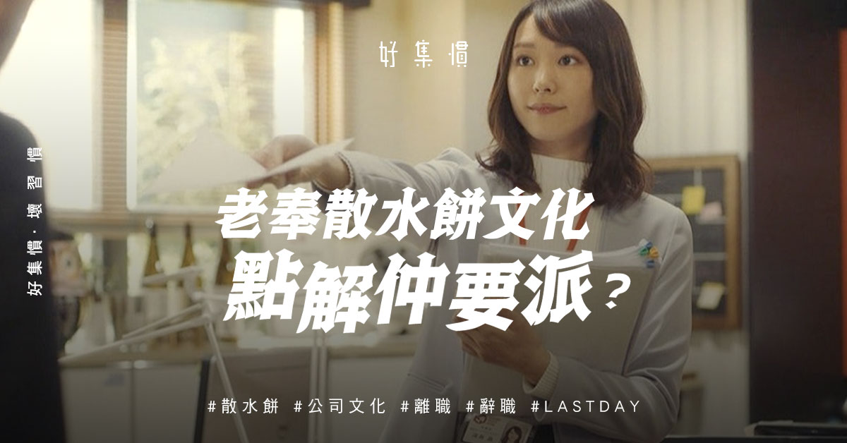雖然沒有明文規定離職要派散水餅,但離職派散水餅是香港約定俗成的職場文化。不少人在 last day 前費盡心思,只為了要平衡銀包和同事觀感。如果你身處一個大部門,即使只是 30 元一件餅,乘以部門同事數量,都要四位數字。顧及銀包,派得太平價又怕會在被人背後非議,到底離職日後都不相見,還需要做最後一場戲嗎?