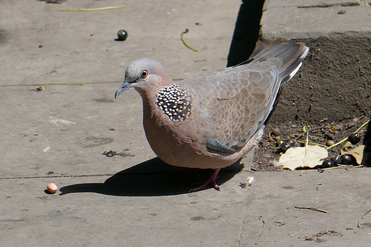 「咕姑固」的真名叫珠頸斑鳩,貌似鴿,但頸上有白色珠點,經常成群活動,以草籽,穀物,掉落的果實和其他植物的種子為食。圖片來源:https://www.wikiwand.com/