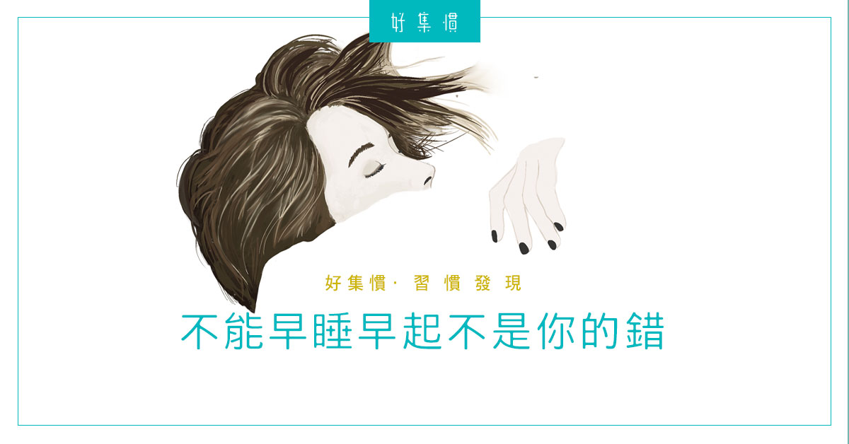 每個人天生也帶著不同的生理時鐘,晚睡不一定就是壞習慣。雖然在朝九晚五為主的社會,不少研究都指出可後天慢慢調整,但也不用因為自己做不到早睡早起而內疚。慢慢來,先找找自己睡眠的規律,好好睡飽,再建立適合自己生理時鐘的生活方式吧!