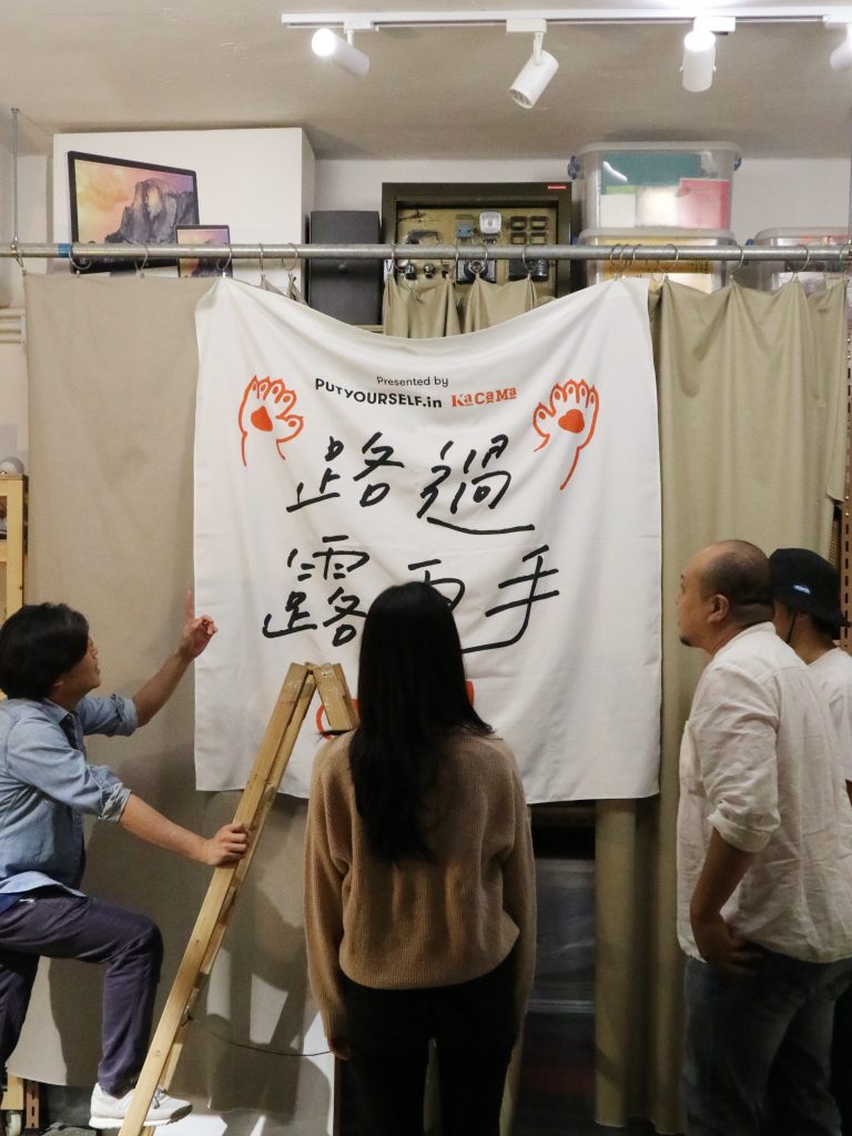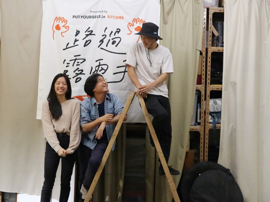 創辦人三隻字太老正,稱他們為「搞手」其實更貼切。《路過露兩手》是一個極度快閃的表演平台,不定時隨各個社區活動在不同地區出現,由售票平台PUTYOURSELF.in以及產品設計團隊KaCaMa Design Lab 合作誕生。(左起)PUTYOURSELF.in的Jennifer 及Wilson、KaCaMa Design Lab 的Match。