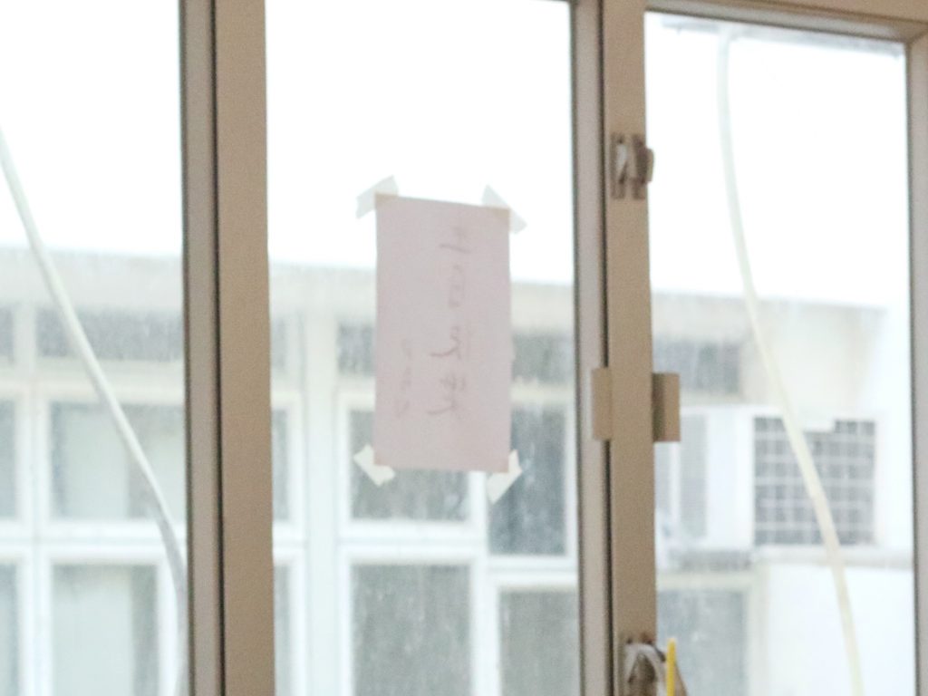雨勢逐漸變小,我看着Match 的工作室窗戶向外貼着一張寫上「生日快樂」的A4紙;距離十米的對街大廈姨姨也向他貼着「打風小心」的窩心叮嚀,叫人訝異香港原來還有這種「問對面屋借豉油」的情懷。