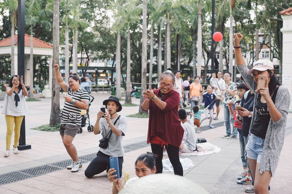 「有位Uncle David 是我們的常客,佢幾乎成為是隱藏成員!六十幾歲、已經退休,他會幫人唱和音,觀察到其他人想唱歌但不懂歌詞,還特地印了歌詞書送給我們,好有心!」團隊中唯一的女生Jennifer 笑言,活動開始時大家大都很含蓄,但看到別人露兩手後卻又心癢。「曾經有小朋友表演唱校歌,又有人朗誦,甚至扯鈴、水晶球舞蹈都有!」沒有包袱,沒有壓力,就算一時失手也。「沒有人會judge,只是拍手鼓勵你再試一次。」大家玩得樂而忘返,讓他們每次都要出盡全力嚷著收檔。「有次雨勢幾近紅雨,我們還擔心擴音器會不會浸濕,但兩個姨姨在帳篷下唱到不願走。」