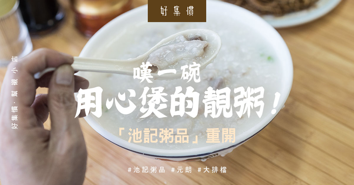 去年中,位於元朗大排檔的池記粥品關門大吉,引起元朗居民一陣哀哭聲,只因池記開業至今已逾40年歷史;由於位於元朗巴士站附近的熟食市場,試問哪個元朗居民未食過它們的出品?!直至去年11月熟食市場裝修完畢,「池記」重開,令不少街坊放頭大石,繼續捧場。