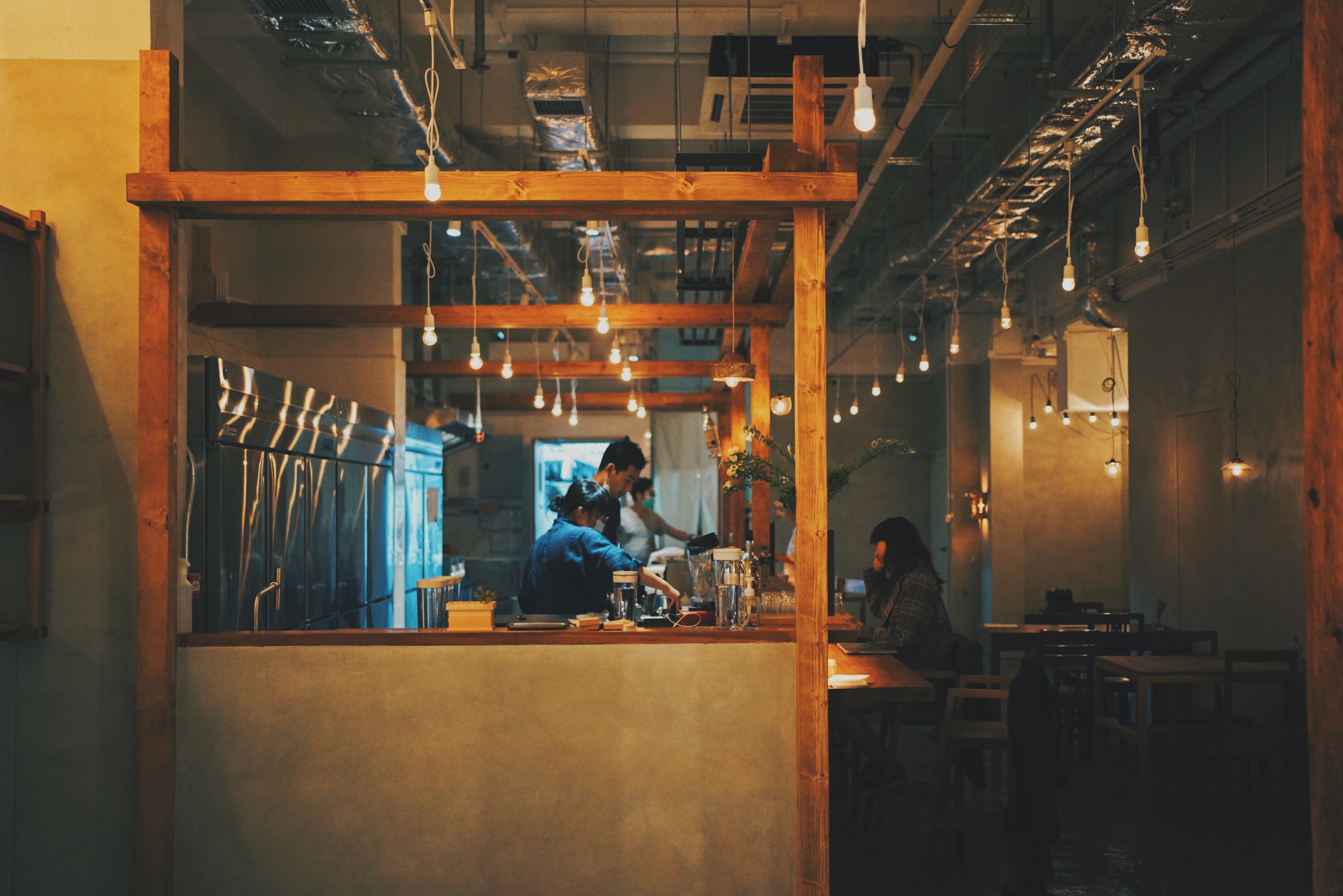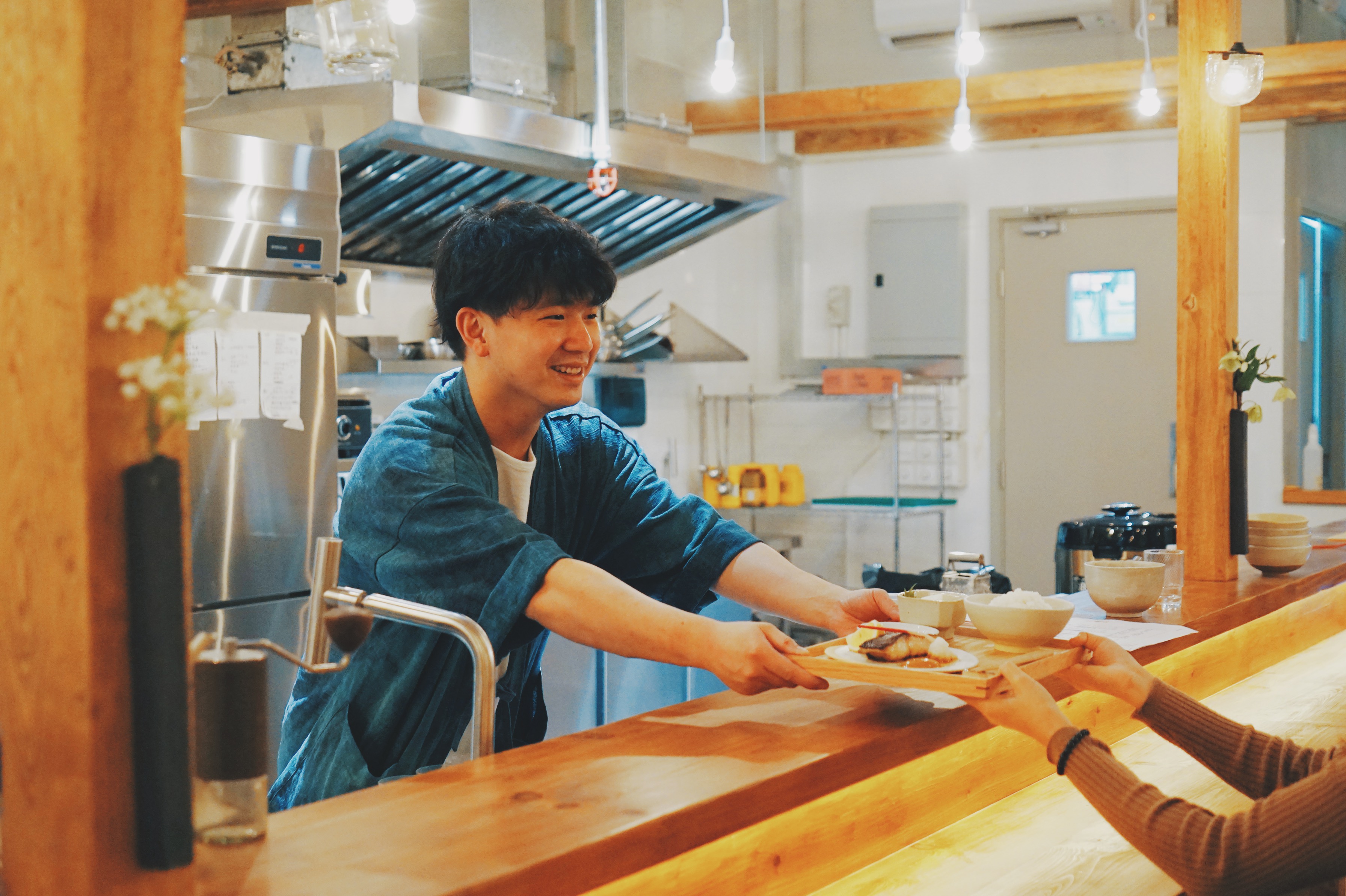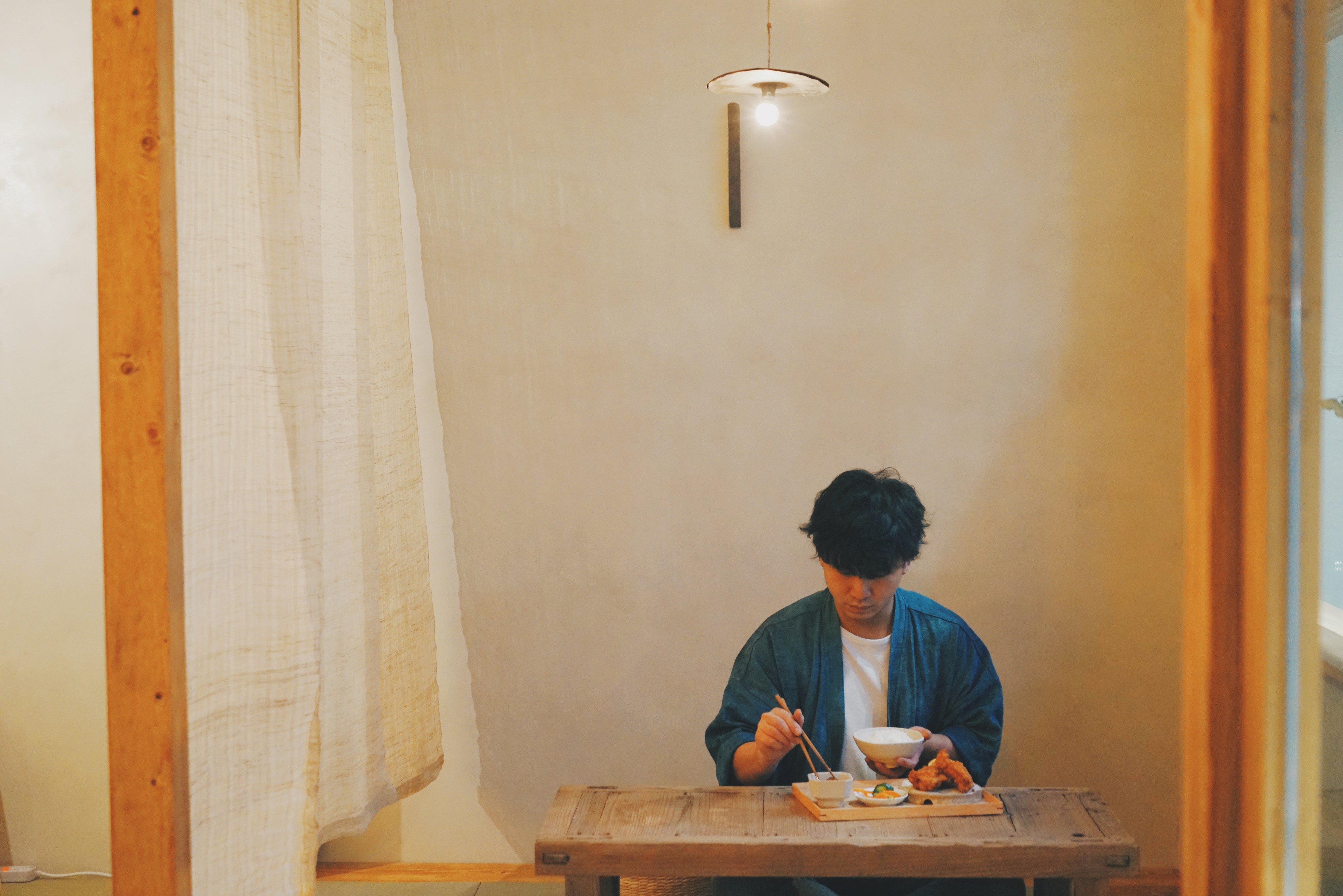 Vincent 為了帶給食客一種古樸溫暖的氣息,邀請了許多本地職人合作:室內設計邀請了古道具屋「常常集品」操刀、所有實木結構則由本地木工職人「禾日三巷」施工、「Moldflip」 的水泥牆身、本地藍染單位「片造藍」所製作的麻布,加上從各處收集回來的舊木傢私等,一室都是手工的溫度。
