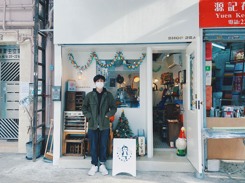 店主 Sting 及 Ellen 從事廣告業,疫情下工作受影響,平時喜愛收集舊物的他們,看見這個只得 70 呎的奇異空間,加上租金便宜,想都不想就租下這裡,於是這個看似「九唔搭八」的小空間,便進駐在深水埗界限街上。