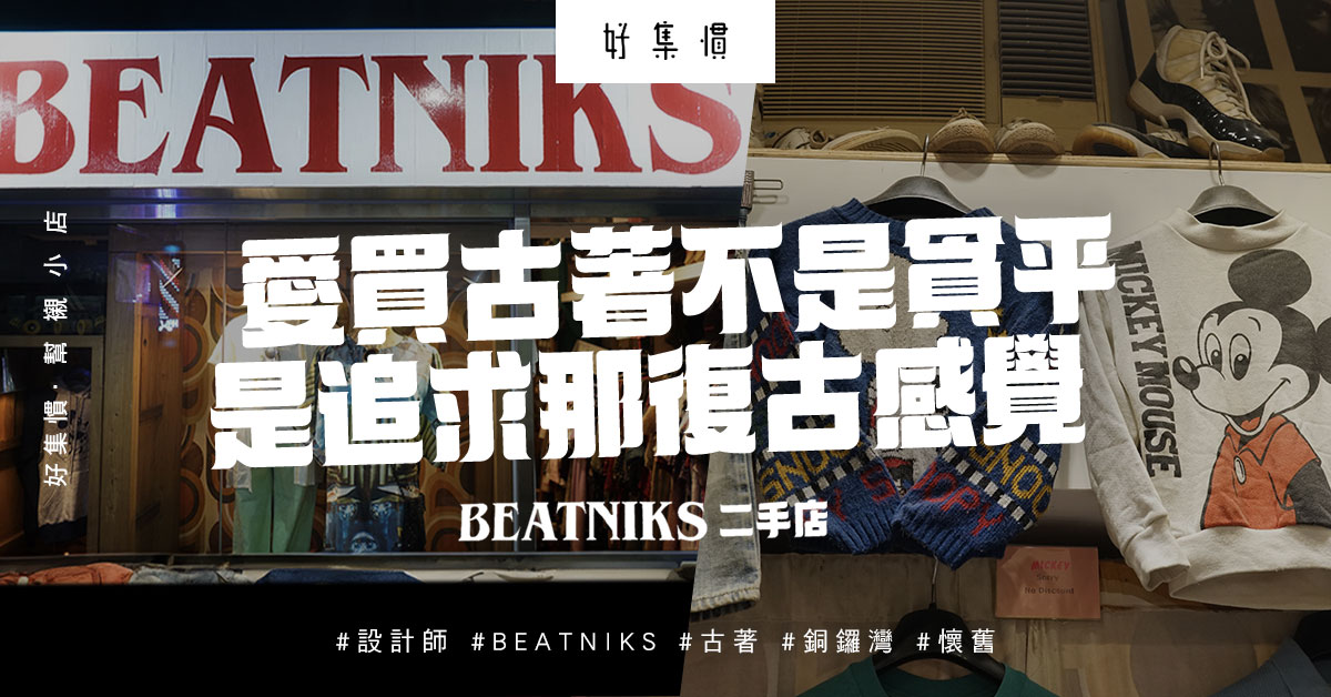 尋覓古著,其中一列衣架寫上:Re-create Items,竟然是阿基自己再設計!「以前賣二手衫,由於不少是歐美、日本返貨,Size較大,不少香港人穿起來太大,阿基便找製衣工人改衫,但有時一件賣三數百元的襯衣,改衣也要三數百元,不太划算。「但遇上心愛的古著,可遇不可求,只得一件沒有尺寸可揀,客人還是會不惜工本改衣。」後來,改衣的費用愈來愈貴,阿基便索性由頭學起車衣,自己來當製衣工人。「你估我真係時裝設計咩,見步行步,煮到埋嚟咪食囉。」阿基又串串貢說。再後來,竟然有熟客拿着一幅Balenciaga patch work衫的雜誌照問他:「可否幫我改到一模一樣?」就這樣,阿基陰差陽錯變了設計師。「這些Re-create Items,我就是利用舊衣物重新設計和改造,玩玩吓啦。」簡直可說是up-cycling的始祖,而其實真的幾靚。所以說,如果你熱愛古著,自問又有獨特品味,在Beatniks肯定執到寶。