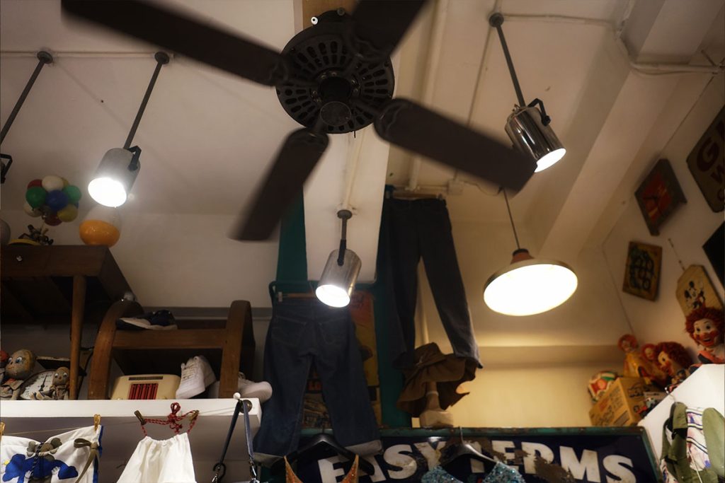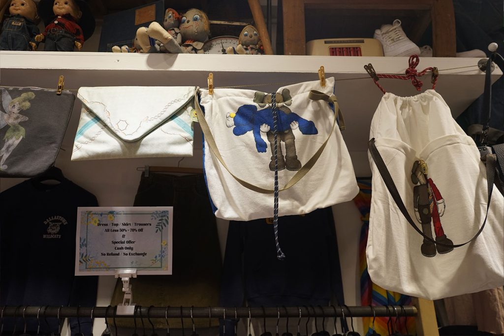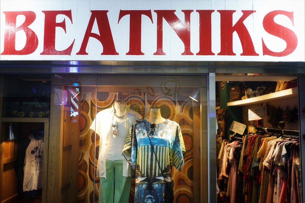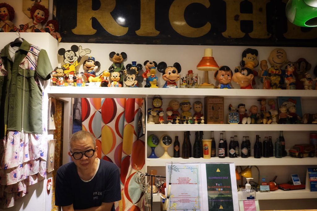阿基串串貢。一開始問點稱呼:「叫我阿基,基佬個基。」問他:這個場人影都無個,簡直是個死場。他答道:「我就是貪佢人少,少啲人來無咁煩。」店裏放着五、六十年代公仔米奇老鼠、史樂比、麥當勞叔叔等等懷舊玩具,賣不賣的?「唔係賣㗎,自己收藏,放在這裏咪話俾人知我哋賣二手衫囉,氣氛係咪好啲呀?」阿基反問。一副唔憂做的樣子,只因阿基從事二手衫買賣已有二十多年。「你有沒有去過尖沙咀利時?我的第一間店子就在那裏開店。」其時,最主要賣美國古著舊Tee。「其實,在香港愛古著Tee來來去去都是那班人,他們買古著不是貪平,而是追求那份復古的感覺。」所以,曾有生客盲舂舂走來,嫌Beatniks的「二手衫」太貴(肯定貴過UNILQO或H&M),阿基有氣沒氣地說:「係呀,死人著過添呀。」這裏的古著也不是太貴,大多三數百元有交易,最重要是,不少更是獨一無二的。