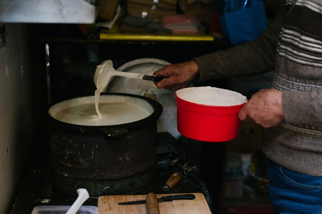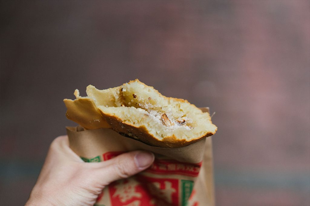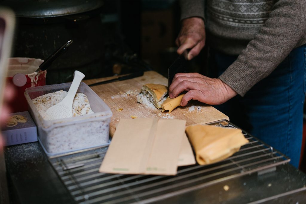 「(上世紀)五、六十年代,冷糕是香港流行的街頭小食,抵食夾大件,人們當飯食。」以香脆的餅皮,夾着炒香了的芝麻、花生碎及砂糖,味道香甜滋味。「以前人們要求很簡單,熱辣辣,甜絲絲,怎會不好吃?」但要做好一件夾餅卻不簡單。「首先,你一定要有部夾餅機,現在真不知哪裏找呢(笑),夾餅機勝在溫度高,熱力平均,這樣你才能做到外層香脆,中間還是軟糯;其次是發酵,以麵粉、泡打粉、酵母發酵一、兩個小時,時間太少冷糕發不起,但又不能太久,否則會變酸;所以,我現在每天只做兩桶(粉漿),早上一桶,下午一桶,賣完就收工。」另外,跟酸種麵包的酸種一樣,酵母一定要「悉心照料」,若保存不好會受潮,酵母會沒有活性,人們形容是「死掉了」。