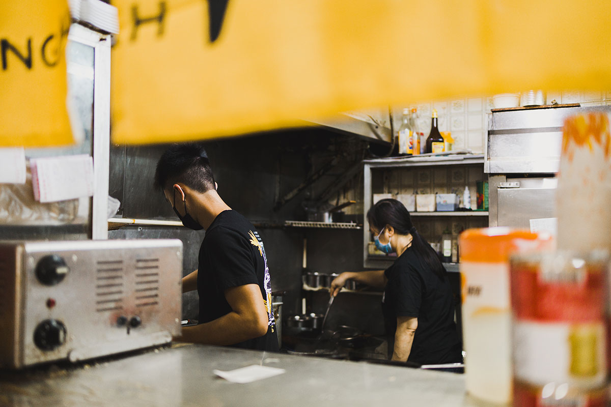 二十四歲的阿鎽則一臉從容,小時送外賣,大時放學放工幫忙收錢。曾是全職足球員的他,近年學做小炒水吧樓面。「不過似乎可有可無,應付不來就被罵。」從前兩母子不曾爭執,但跨代合作,她斥他不對,他嫌她過時。最後他們學會補位,你有你手寫落單,我有我上網請人,決定母親主內,兒子主外,落舖之餘管理社交平台,處理人際事務。