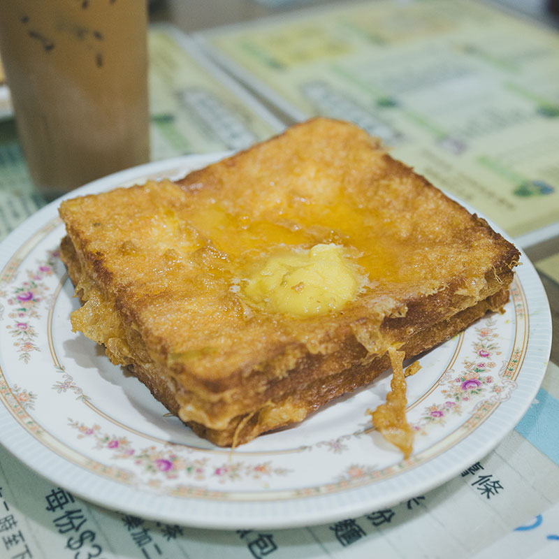 西多士內藏花生醬,外添大塊牛油,份量毫不吝嗇。
