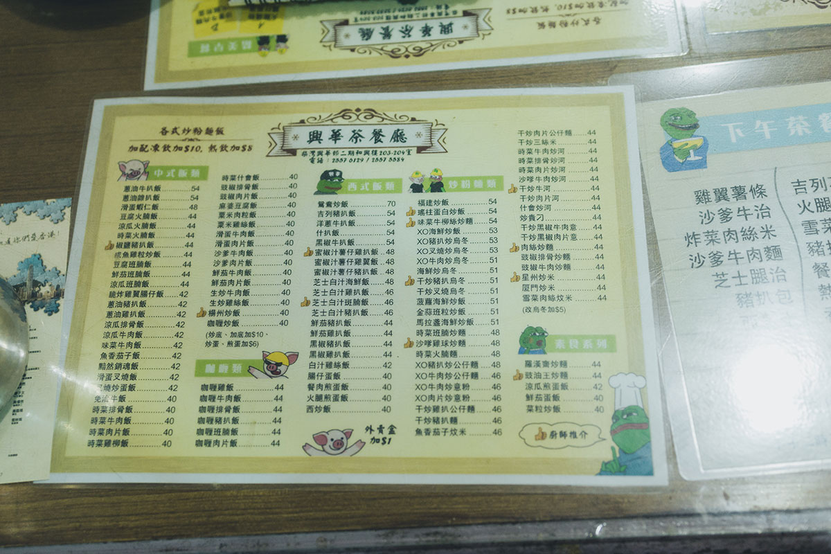 柴灣有座天空之城,名為興華(二)邨,高架山上,僻靜清幽。從山腳乘電梯直登十六樓中空平台,能俯瞰工廈群樓,走廊盡處暗藏一家老牌茶記,招牌漆上「興華茶餐廳」。自成一角的佈局,令時光過得舒適緩慢。晃眼多年,世事垂老,熟客披銀髮,舊商戶退場,只有他們地磚皮椅擺位依舊。太子爺阿鎽前陣子翻舊相,相中兩公婆坐窗邊吃飯,怎料抬頭見奇景:「他們二十年不變,仲係坐嗰個位,食嗰啲嘢!」問太子有何私心推介,他笑著答:「招牌?就係阿媽囉!」
