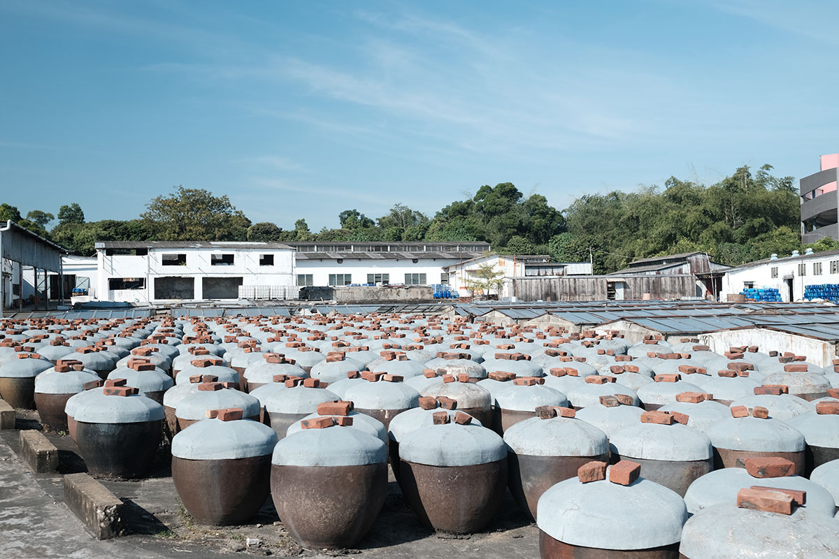 九龍醬園,其實是美珍醬園的副線品牌,於 1917 年創立,轉眼間已成 104 年老字號。於六十年代從九龍城搬到元朗,九龍醬園多年來堅持古法製醬油。大門豎立著「美珍醬油菓子廠」招牌,踏入醬園,眼前是滿地的大醬缸,豉油香氣佈滿每一角落。「醬缸已經很少有,用泥土做的,爛一個就少一個,但味道是最好的。」打開蓋子,表面是厚厚一層黃豆,底下才是豉油,要用特別工具才能抽出來。