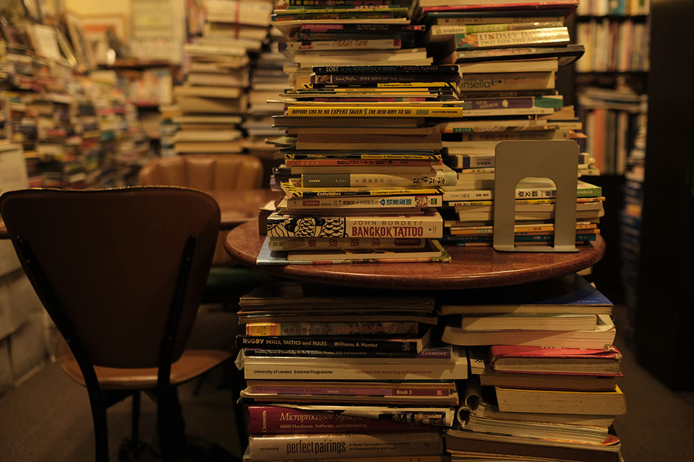 在書院林立的西營盤,柏道斜路中瞥見一間紅磚小店。走進紅牆,耳邊響起千禧年代的音樂,眼前盡是書堆。在書與書之間,找了個位置,那是被書環繞的感覺。