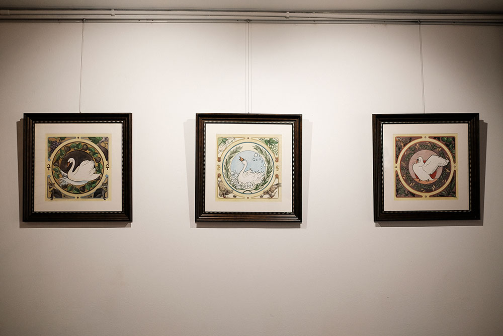 店裡掛有不少畫作,全都是由另一位拍檔 Kay 所畫。他以不同地方作畫的手法,畫出經典菜的源由。在牆上的三幅「鵝」,就是用法國畫的風格,說出鵝肝從古埃及傳至羅馬和法國的歷史。