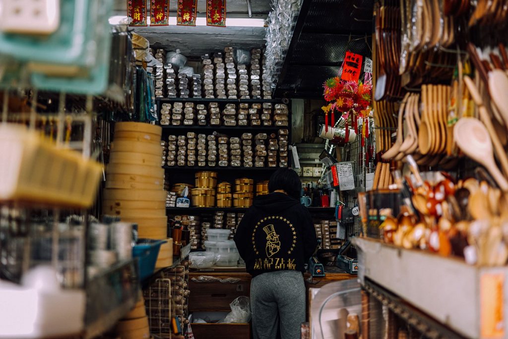 店內除砧板以外,還有一系列用木造的廚房用品。這裏工作的店員許多都是老員工了,穿著由Mike的哥哥所設計的萬記砧板員工T-Shirt。