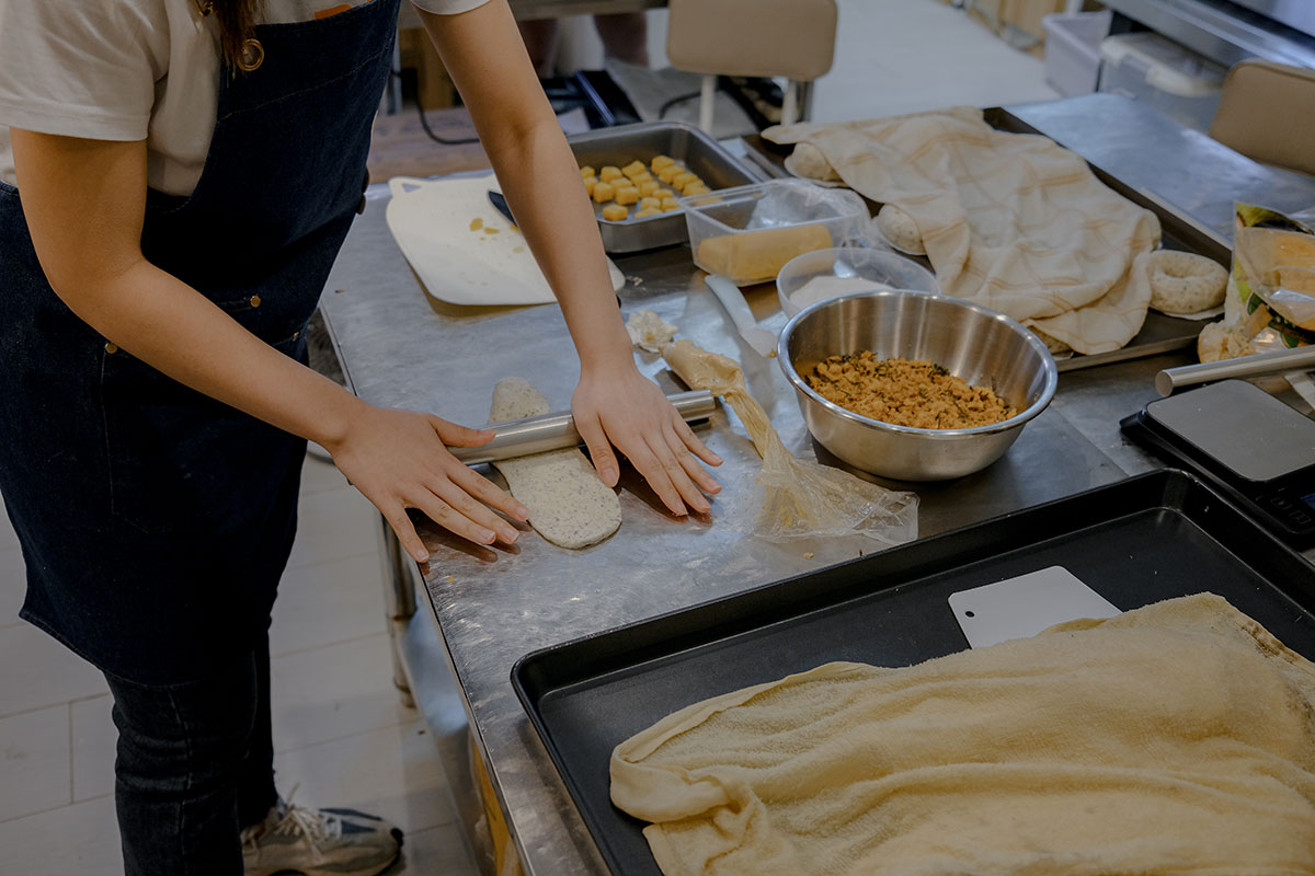 畢業那年,同學鋪路晉身傳媒,她則兼顧學業、寫劇本、經營 Youtube,每逢假日帶架生到共享廚房,朝九晚六開工,趁空檔咬個包,清潔完趕忙交收,手痠燙傷成常態。這雙手其實也有記者夢,但傳媒陸續倒下,記者無處容身,拍片、做幕前講求運氣。世事失控,唯獨貝果是肯搓就能做。「比起記錄,我更想創造。」