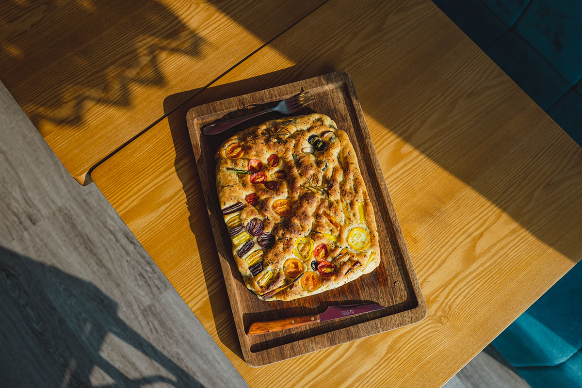 邀約訪問,回覆者自稱小編,建議聯絡店主。一問才知她們是母女檔,地獄廚神大女掌管網上宣傳,媽媽做包。這意大利扁平香草包不含蛋奶,布滿凹洞,比一般包厚實,比披薩飽滿鬆軟,常配以迷迭香、橄欖油、鹽。她以時令蔬果添彩,如燈籠椒、菇菌、蘿蔔,把麵團化成畫布,愈覺治癒。今年新年炮製出一條「壓年魚」,兩個女兒一吃難忘。饞嘴的 Joyce 見出品罕見,想公諸同好,適逢大學畢業,便踴躍爭取工作機會:「你賣包,我幫你賣!」點賣?IG。老派媽媽半信半疑,仍讓她試試:「父母只能給她鑰匙,開門後的路要靠自己行。」