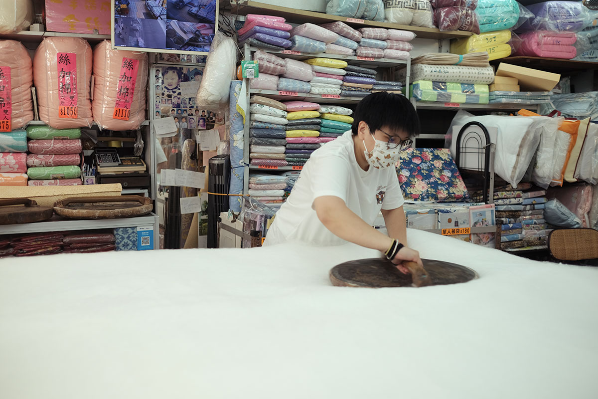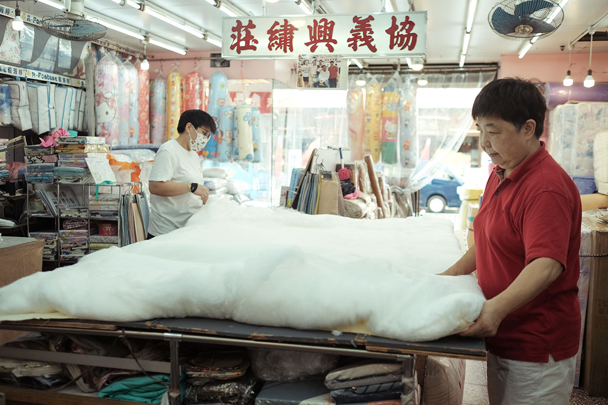 守住日漸式微的家業,林女士說得瀟灑:「不要如此辛苦,時間都是這樣過,慢慢拉長嚟做。」正如人工絲綿被,最花時間的,往往最經得起考驗,可以蓋上一輩子。