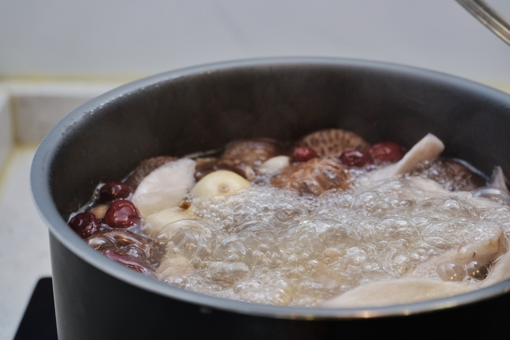 而要炮製這一道湯水,工夫可不少,淮山、冬菇先要浸水去蒂,馬蹄剝殼,腰果先汆汆水,不然會苦澀;加入蓮子更可清心熱呢。「我有個貼士,可用壓力煲先煲40分鐘,慳電嘛,而且它不會走水;不過,最後可再放到瓦煲再煲15分鐘,咁味道便能醇厚一點喇。」玲姐巴巴閉地說。