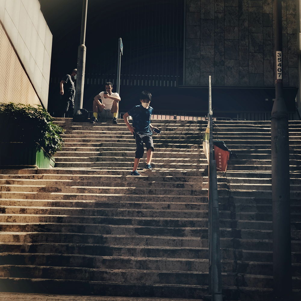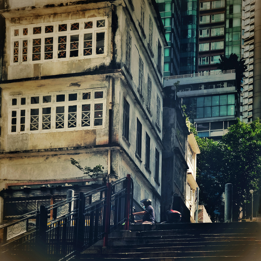 自小,Janet走在城皇街不知多少遍,卻從沒有發現:「由於石級是以花崗岩石鋪成,每一級的高度都略有不同,另外,地面亦不是死沉沉的平,而是因應花崗石面而變化,走起來更有質感和趣味;甚至,從堅道向下走或從荷里活道向上走;走在左邊樓梯或是右邊的樓梯,眼前的景物亦有所不同!」