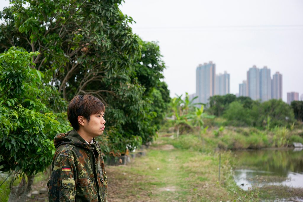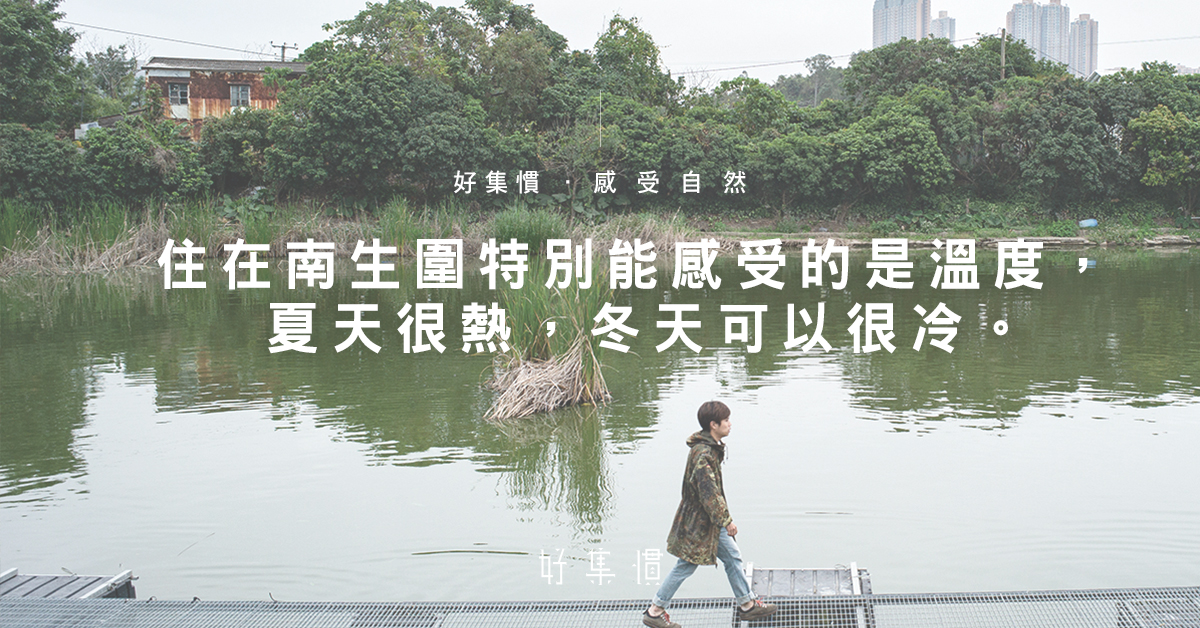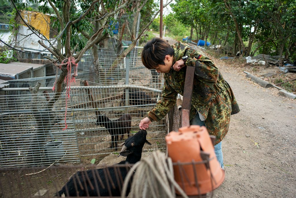 立春後,乍暖還寒,阿業從敬輝農場小賣部後方的走廊走來,拉着風衣的衣領,「今日有點涼。」他說:「住在南生圍特別感受到的是溫度,夏天很熱,冬天可以很冷。」如果是夏天,怕熱的他會短褲踢拖地,任雙腳沾滿泥塵;平日又會跟父親捉魚、宰魚自吃,「有些朋友會叫我野孩子。」他笑着說。