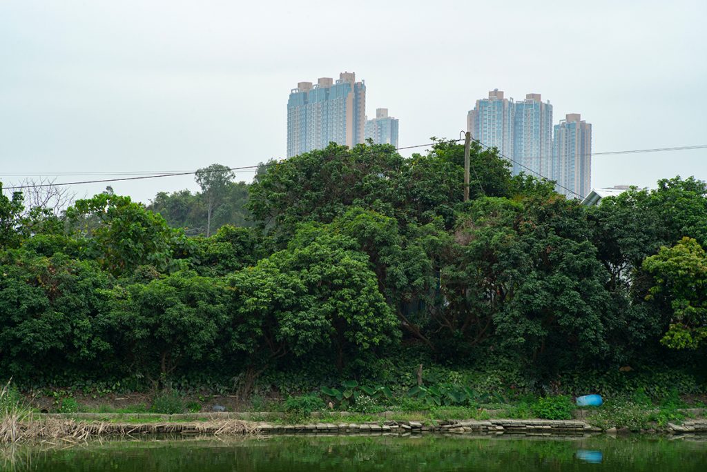 松鼠也曾在林間冒出來與他相遇,「沒想到會見到!」還有樹蛙,「這裏的樹蛙很美,很瘦。有時牠會跳上工作室的窗,看到牠用吸盤吸住了玻璃,很有趣。」踏單車來往市區和家的途中,更不止一次遇上整群的螢火蟲,「沒想過從市區往南生圍踩5分鐘、10分鐘的路,就可以見到螢火蟲,而且還幾多。」他說時仍難掩驚奇。「後來我還在一些樹頭上見到小小的蟲,尾部有光,才知道原來螢火蟲的幼蟲也會發光的。」