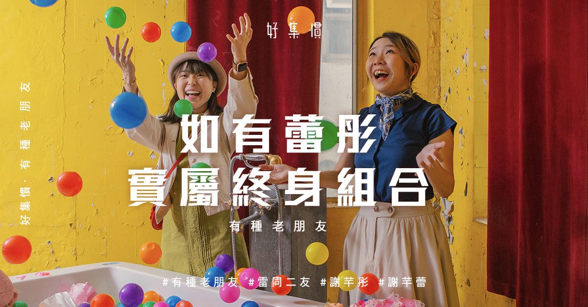 謝芊彤和謝芊蕾日常對話,每隔幾句不是疊聲,就是爆笑。旁人未必理解,但總會不自覺地浸沉於歡快爛漫中。如此化學作用,或是雷同二友獨有,連名字也零舍搞笑——如有「蕾」「彤」,實屬組合。謝氏姐妹有多重身份,是室友、創作夥伴、podcast 拍檔,也是即興玩伴。二十幾年來,兩姐妹負責在家中唱雙簧博君一粲,作歌也是為撫慰心靈。大概是因磁場相近,很多人曾誤會她們是孖妹,相距五歲的二人澄清:「我們絕非孖公仔,打打殺殺居多。」彼此常常爭論,又挖舊相互相恥笑,轉頭卻被深度話題擊中心坎,時笑時喊超戲劇化,卻創出窩心的情感地帶。