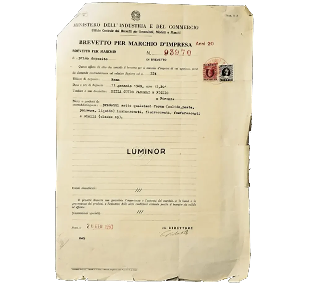 後來,Panerai研發出專利夜光物料,並獲批以「Luminor」命名。它讓指針與刻度在黑暗中自發光芒,令腕錶在極端環境中依然清晰可讀,成為士兵在深海與黑暗中的可靠指引,守護他們完成艱巨任務。數年後,Panerai再推出革命性的槓桿式錶冠護橋設計,為錶殼帶來更堅實穩固的防水性能,同時成為品牌最具代表性的設計元素之一。