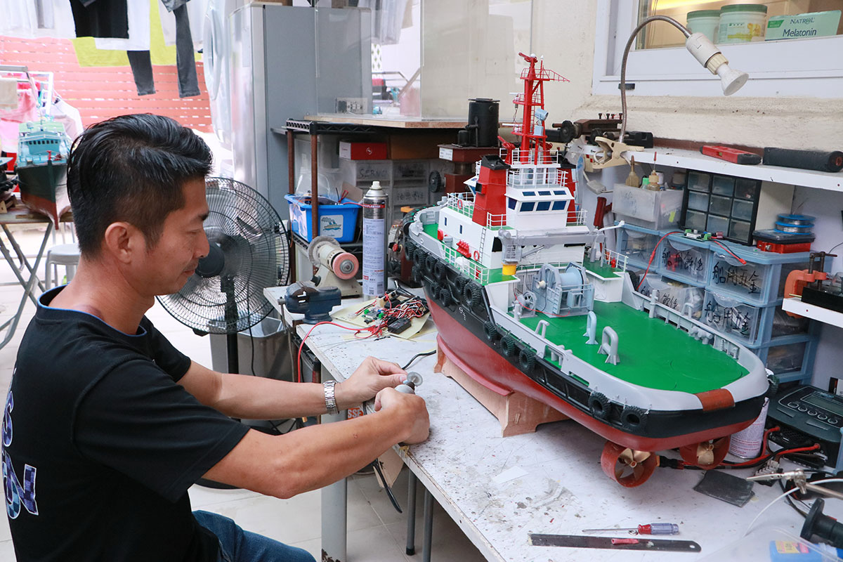 造一隻船可不容易,皆因不像較多人玩的模型車及飛機,大部分零件都有廠商預先造好。模型船相對難買零件,很多時都需要人手雕琢,用膠片逐件逐件?出來,製作時間動輒以月計。而且造船又要考慮穩定性,航行得好不好看,考量比玩車來得多。單是造船面建築已有噴油、裝電線、?電板、批灰等工序,可想而知着實不容易。