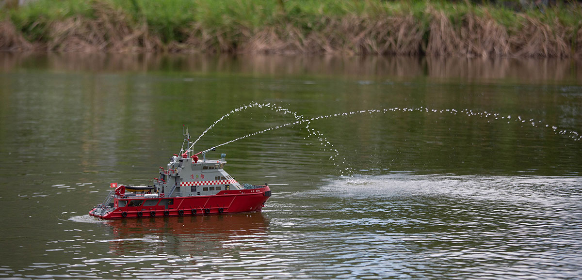 經過反覆研究,Jacky 造的消防船噴水射程可以很遠。