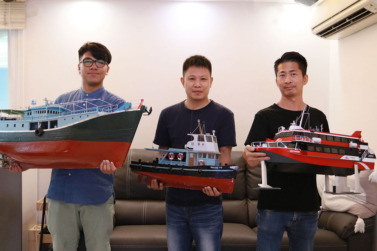 (左起)阿謙、阿佳及 Jacky 手持各自最引以為傲的船。