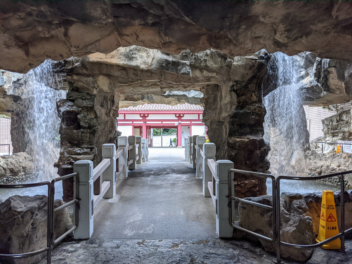 孫悟空一眾師徒上路取西經時,路經火焰山,便向鐵扇公主借芭蕉扇滅火。園內大家就會經過如此的火焰山,為了防止火焰山高溫「傷害」行人,還特意寫著禁止內進呢,把細節都兼顧到,設計上可謂相當用心。