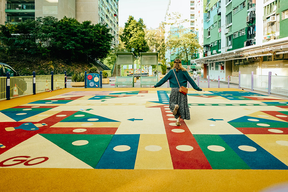 那些年沒有網上世界,與朋友兄弟姐妹玩玩飛行棋,雖然簡單,但足夠快樂。這幅藏在南山邨的某個角落的飛行棋盤,勾起了不少童年時的美好回憶。