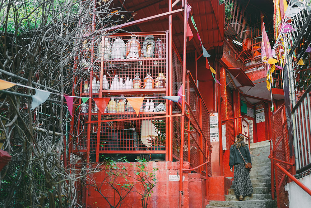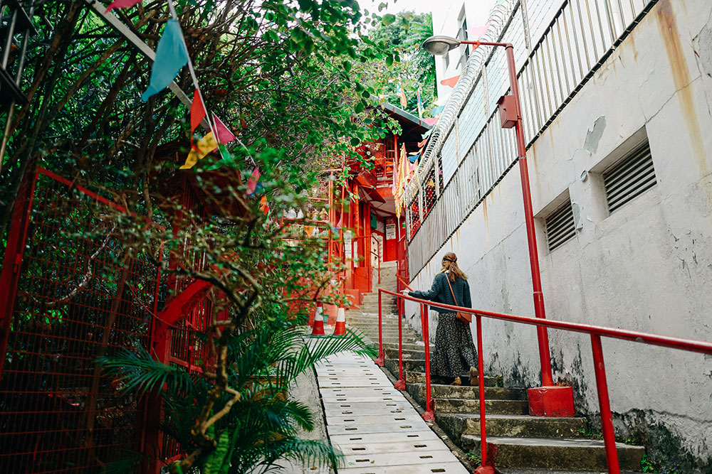 有人聚居的地方,也會也廟宇出現,為人們帶來心靈上的慰藉。在石硤尾棠蔭街上,就有一個神秘的入口,通往一個超過 50 年歷史的古廟 —— 九龍仔福德古廟。這座民間廟宇供奉諸神,例如供奉福德土地公、黃大閣,帝君廟,元天上帝,天后娘娘等,以滿足市民各方面的需要。這古廟依山而建,一直沿著馬路向上爬,能直達主教山(又稱窩仔山),是街坊常常經過的地方。