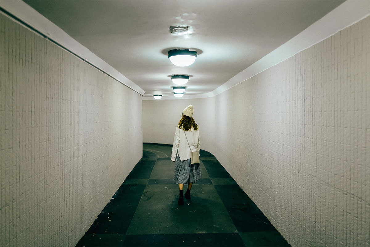 走進香港第一條興建的行人隧道 —— 干諾道中行人隧道,隧道內的燈光晦暗不明,讓人頓時像迷失於時空,從另一頭出來,便抵達「愛丁堡廣場」了。